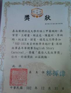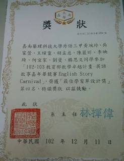 台湾大学的一大特点就是社团活动丰富,院系比赛形式多样。学校大礼堂每周都会举办晚会和开展活动。这里的社团种类丰富,形式灵活,社团活动开展的多姿多彩。令我印象最深刻的就是我们参加应用外语系举办的“英语嘉年华”故事表演比赛,要求全系分为若干小组,每组有8—10名同学,表演英语故事。这不仅考验同学们的英语能力和表演能力,而且要体现同学们的活动组织能力和团队合作能力。记得我们和台湾同学一起编写英语剧本,共同编排故事情节,在愉悦的欢笑和感动的泪水中,最后拿到了很好的成绩。我本人也获得了奖项。通过这次活动,让我们感受到团队合作的重要性,提高了组织和策划活动的能力和英语应用能力。
