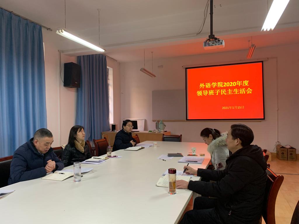 1月15日上午,外语学院在6109会议室召开了2020年度领导班子民主生活会。学校纪委副书记谢玉玺列席会议,学院领导班子参加了会议。会议由党总支书记肖红香主持。